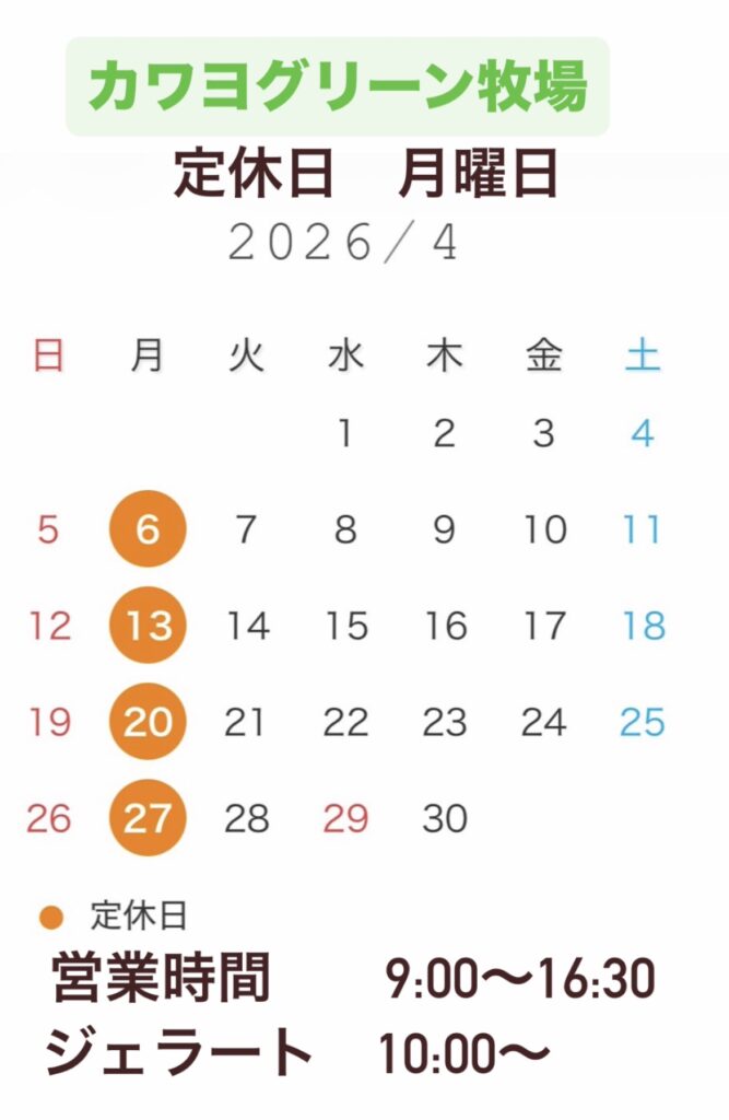 カワヨグリーン牧場の新鮮な牛乳を使ったジェラートを、定番から季節限定フレーバーまでご用意しています。