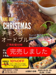 ランチ 23日~25日はコース料理のみ、13時ラストオーダー、となります。