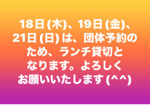 ランチ 21日は貸切です。