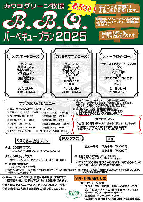- バーベキューのお問い合わせは、0178-56-4111